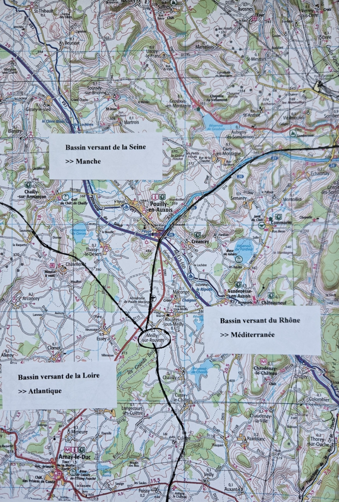 J’ai contourné au plus proche possible tous les bassins versants vers la Méditerranée sur ma gauche et tous les bassins versants vers la Mer du Nord, la Manche puis l’Atlantique sur ma droite. J’ai visité bon nombre de sources où j’ai pu me désaltérer. Ce long chemin est souvent non balisé, parfois commun avec le GR7 balisé « blanc-rouge ». Il passe inévitablement par deux points très particuliers appelés points triples ou tripoints hydrographiques. Points d’où divergent 3 bassins versants vers 3 mers ou océans distincts.